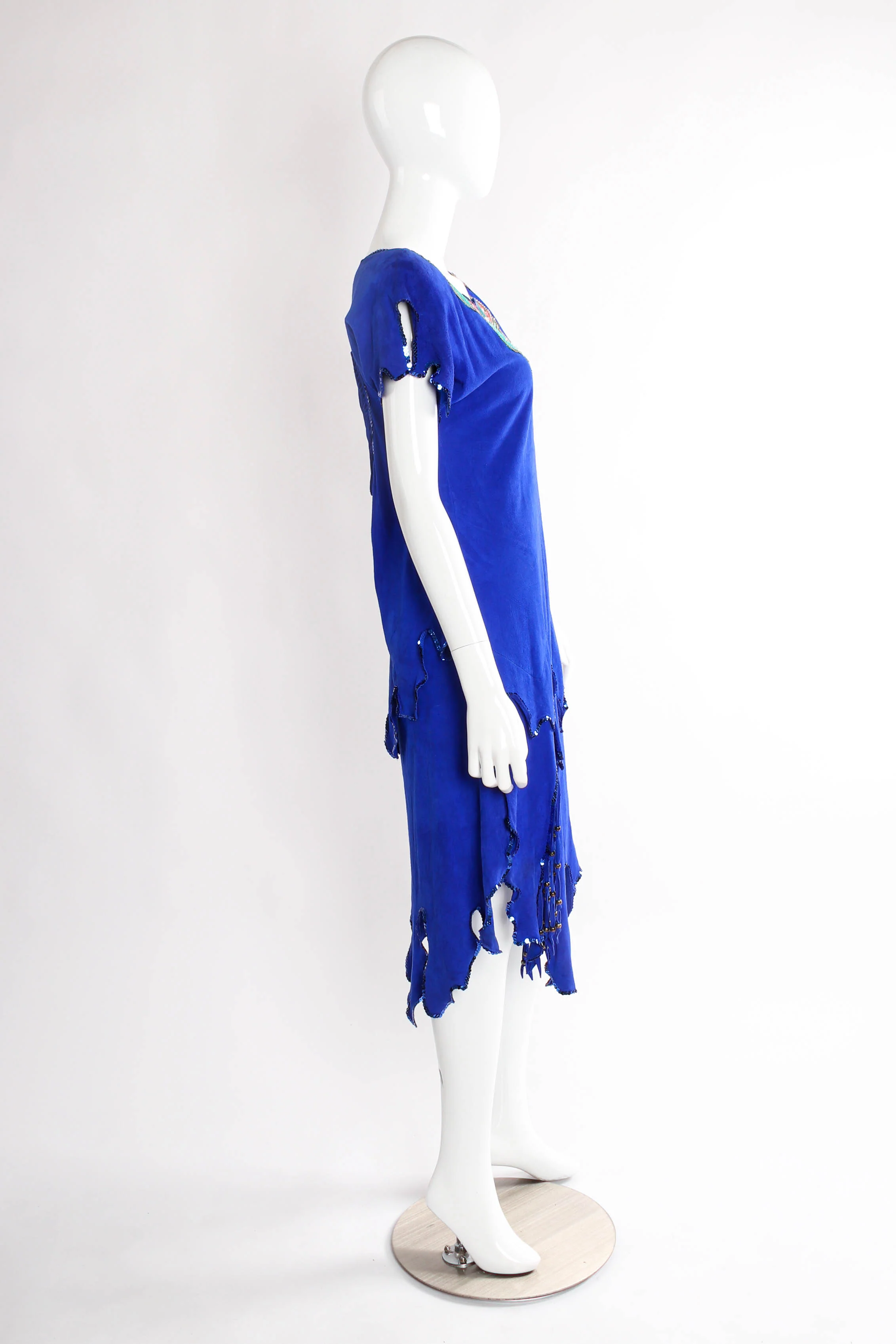 - Snakeskin appliqué, sequins, bronze beads, silver studs, tassels