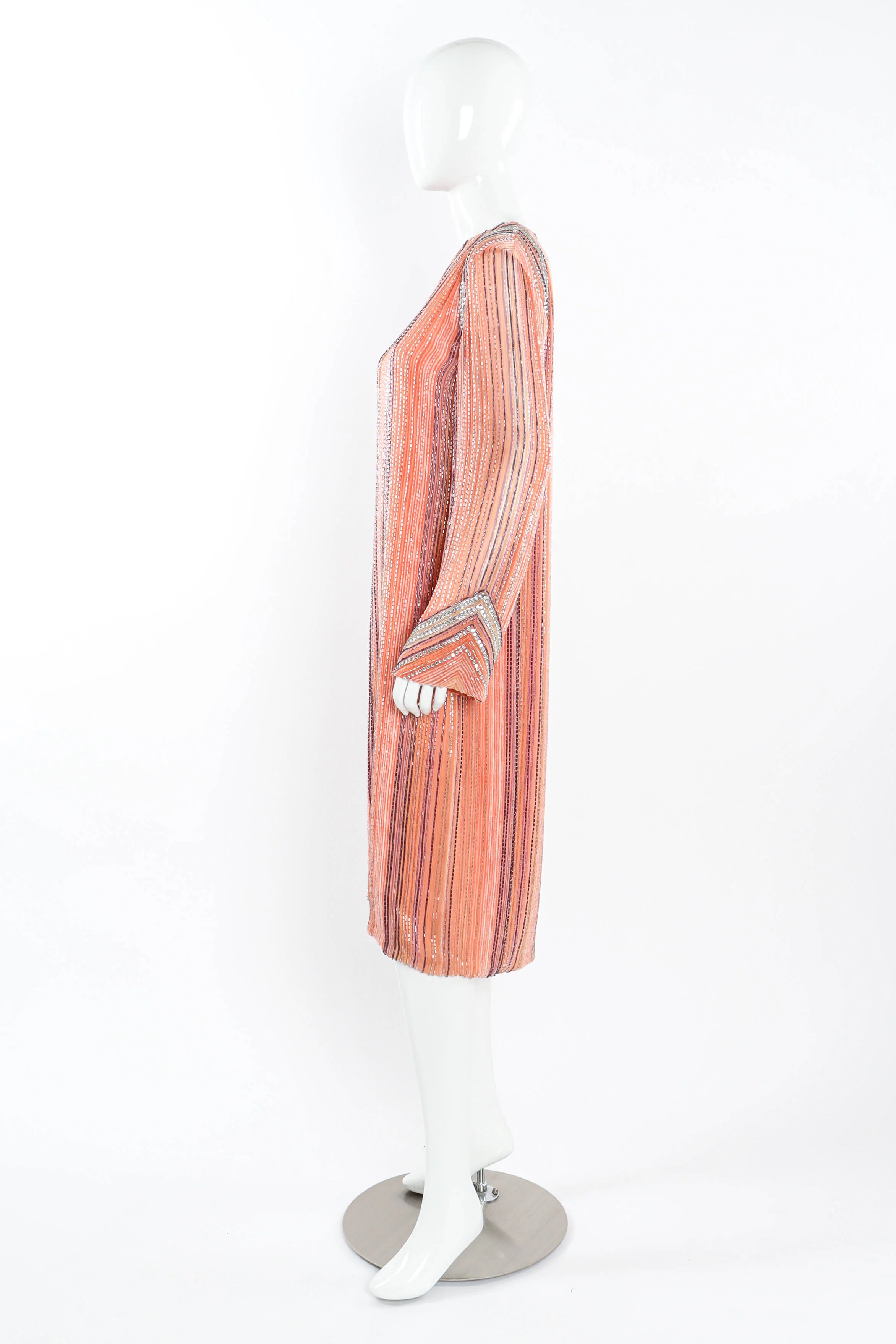 Intricately beaded silk dress with an array of different color beading flowing down the dress by Bob Mackie for Giorgio.