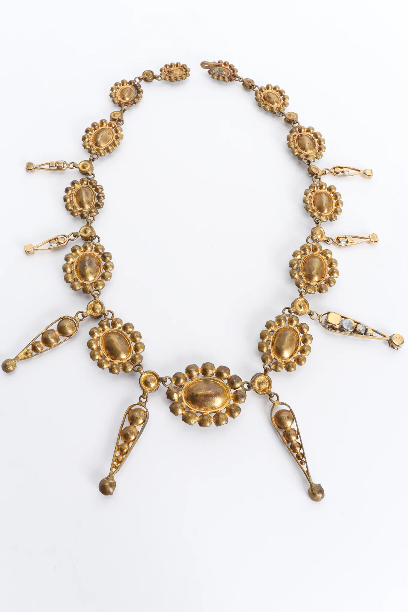 Floral antique emerald rhinestone drop necklace.