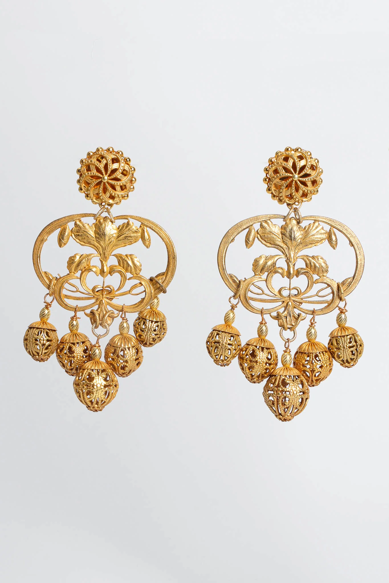 Statement floral bloom filigree orb earrings by Lawrence Vrba.
