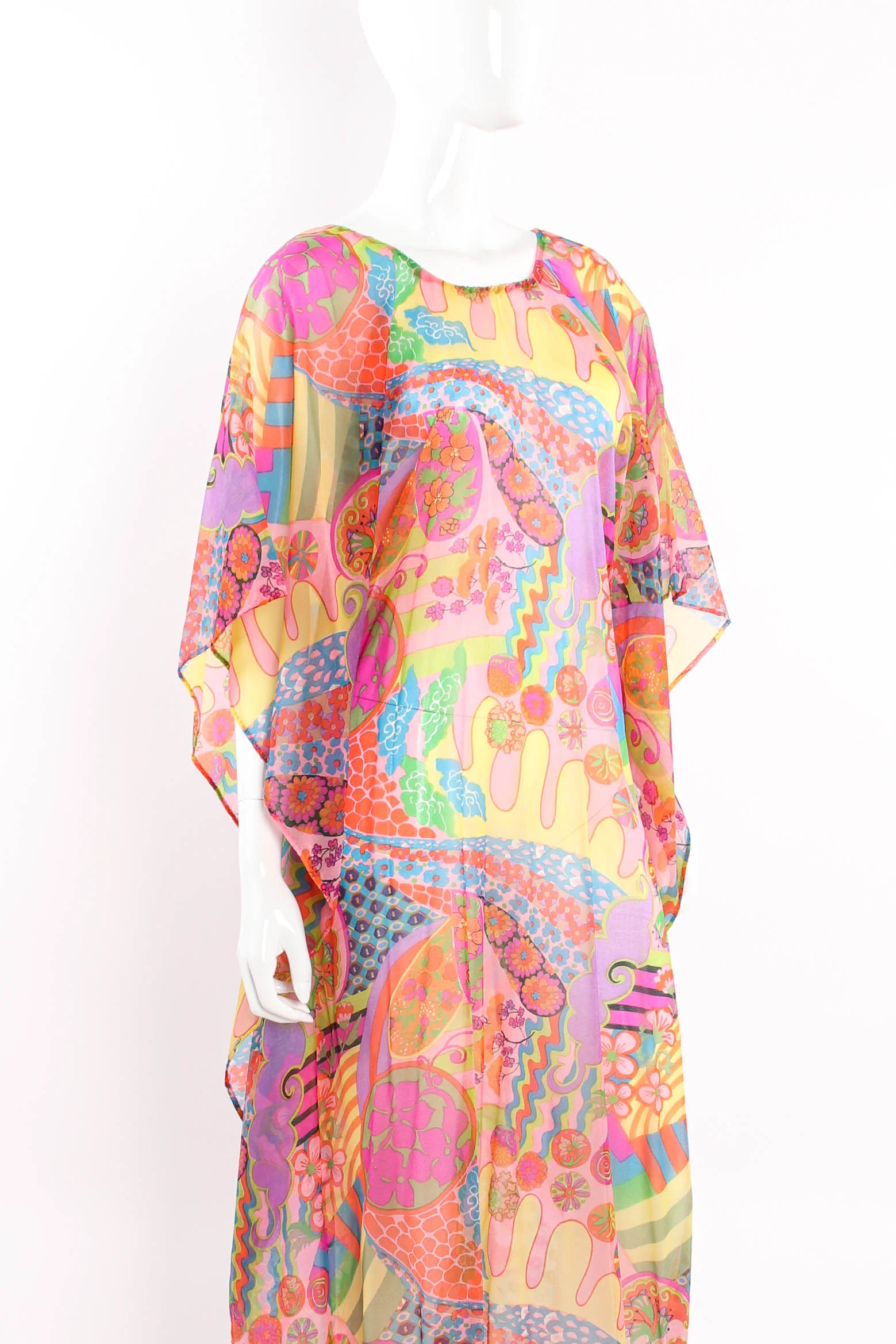 Psychedelic and fun sheer caftan cover up perfect for a festive gathering or for a staycation pool day.