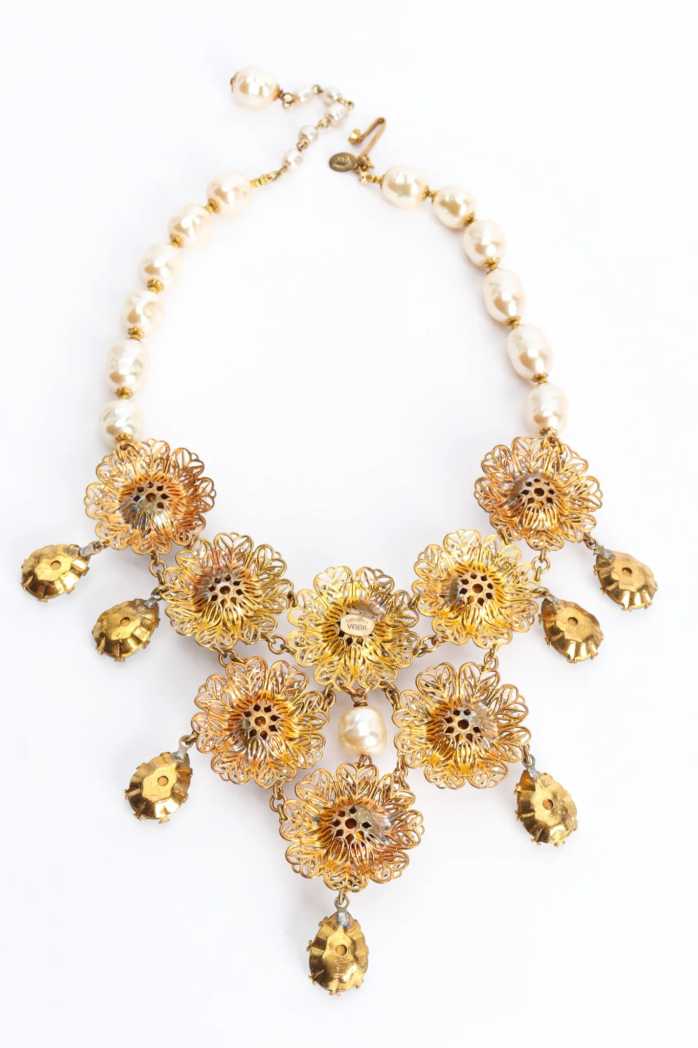 Statement pearl and crystal drop necklace by Lawrence Vrba.