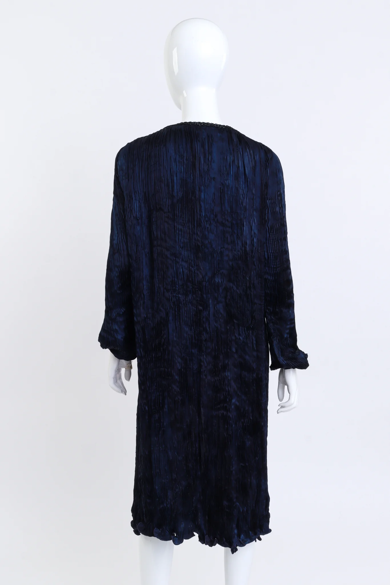 Beautiful dark blue pleated silk duster by Patricia Lester.